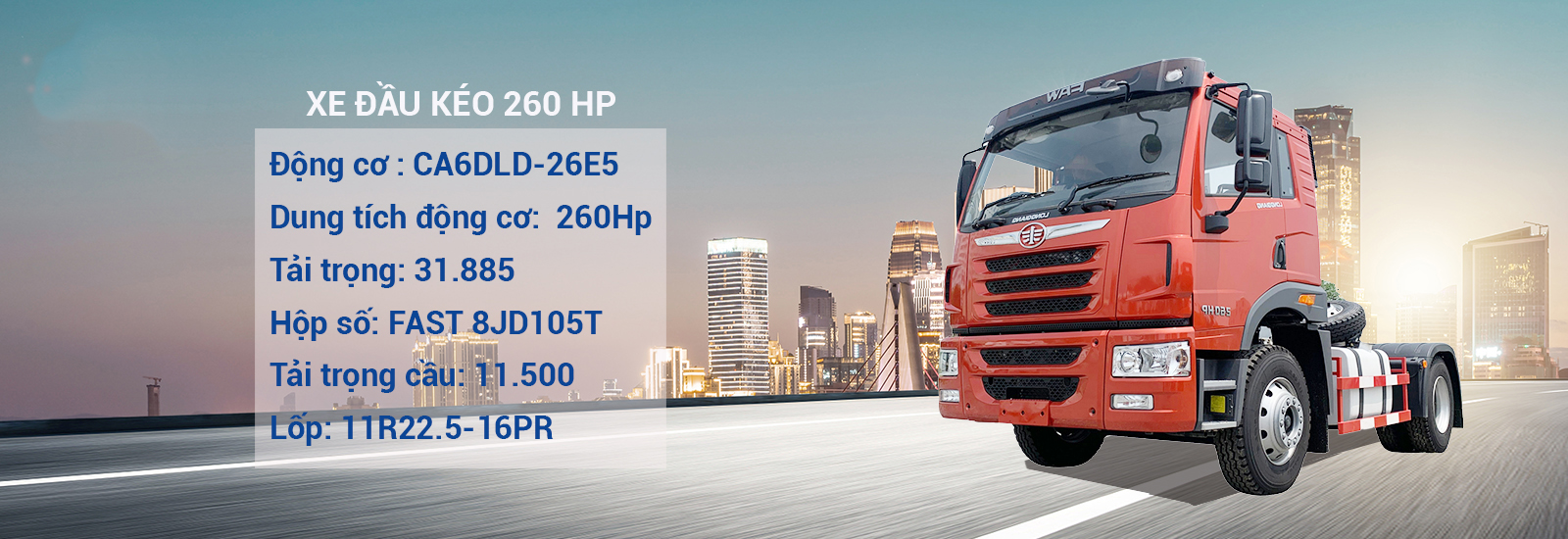 Đầu kéo Faw 1 cầu 260hp được trang bị động cơ CA6DLD-26E5 (FAWDE) dung tích xi lanh 6600cc tiêu chuẩn khí thải Euro 5 mạnh mẽ – tiết kiệm nhiên liệu – bền bỉ – thân thiện với môi trường. Hộp số đồng bộ 8 số tiến, 2 số lùi, 2 tầng FAST 8JS105T Khung gầm dập… View Article